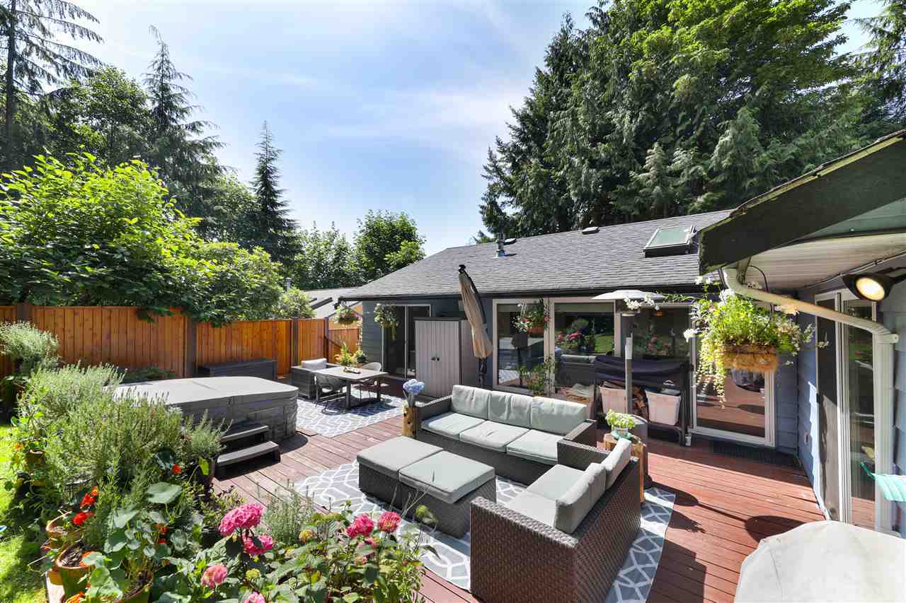 Welcome to Treetop Lane! Perched mountainside on a quiet cul de sac, this property offers the ultimate West Coast Lifestyle. Inside this one level 3 bed/2 bath home, find a stylish gourmet kitchen with a large island, bright open living room, and a large office space for work/home balance. 2 car garage with bonus storage room, plus level parking out front. Smart home technology. Outside is where this property shines and is an entertainer's dream! A private fully fenced yard, backing onto Seymour forest, with a large patio with deluxe hot tub, plenty of space for gardening, and a fun treehouse for the kids. Hiking, running, and biking trails are down the street, while ocean and mountains are just a short drive away.