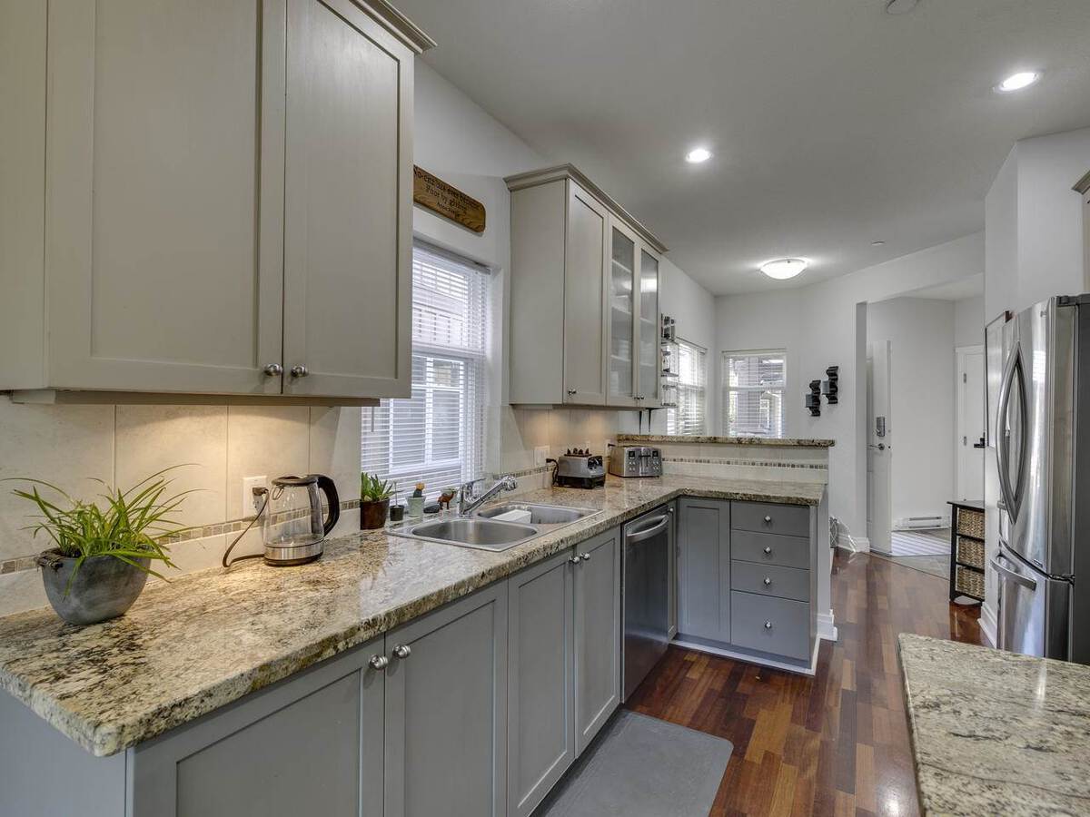 This modern and updated home offers 2 spacious bdrms, both with their own ensuite! A sitting room and office space is an option as well. Ample kitchen space, gas range, gas BBQ hook up, pot lights, and many other added bonus's! This central location is walking distance to many stores and restaurants.