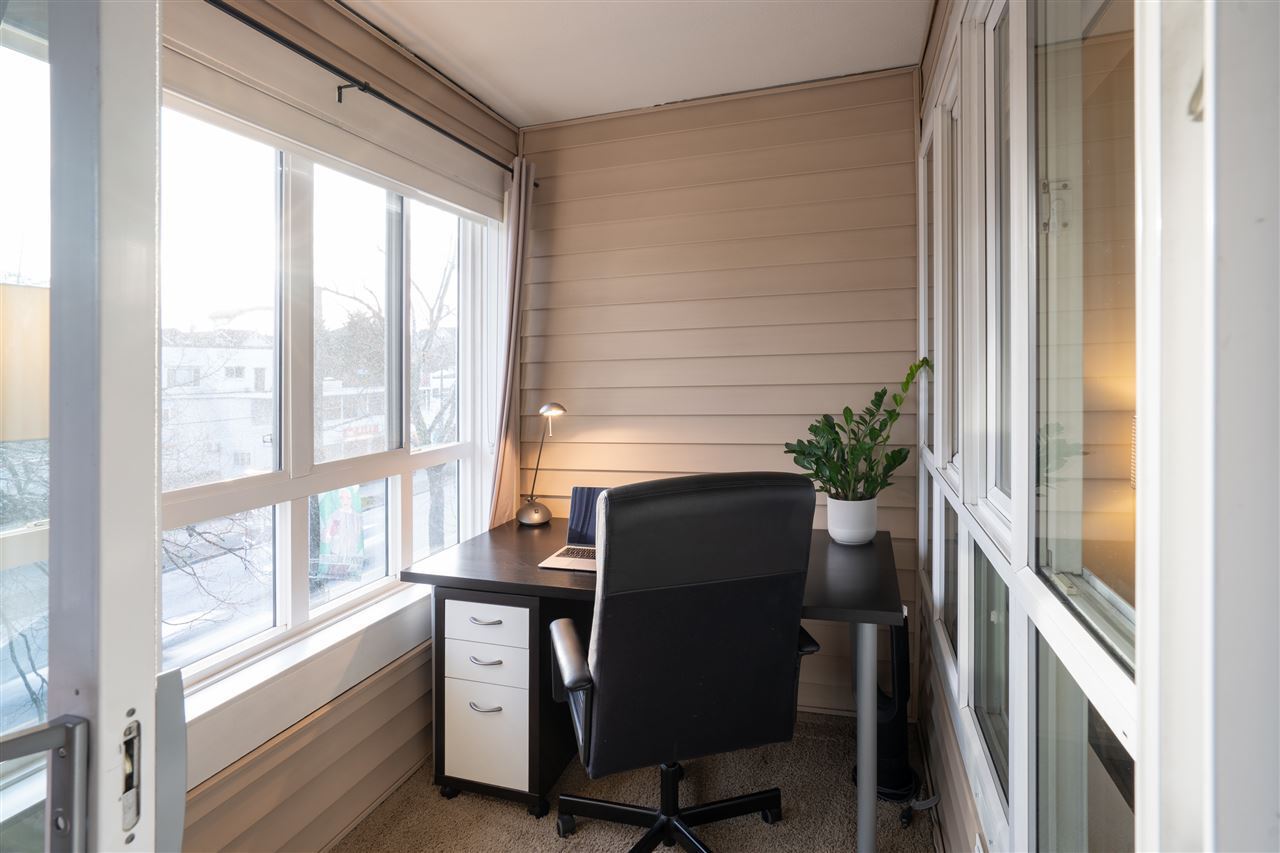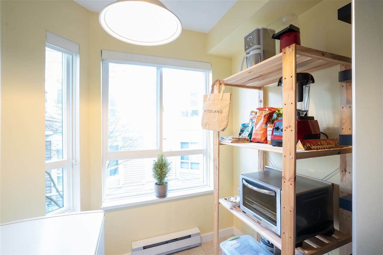 Welcome to Trafalgar Mews! A spacious 1 bed & den in the heart of beautiful Kitsilano awaits. Centrally located with convenient access to current & future transit lines as well as your favourite local beaches and shops. Vancouver's best well known boutique shops are at your door step; Thomas Haas, Uno Gelato and more. This well loved home has updated flooring, kitchen and bathroom as well as plenty of natural light from the front and back of the unit. Trafalgar Mews is designed with overhung outdoor entrances giving you a greater sense of open outdoor space. At 760sf there is generous in suite storage, his & hers closets as well as in suite laundry. 1 Parking & 1 XL storage locker. Plenty of easy parking options available.