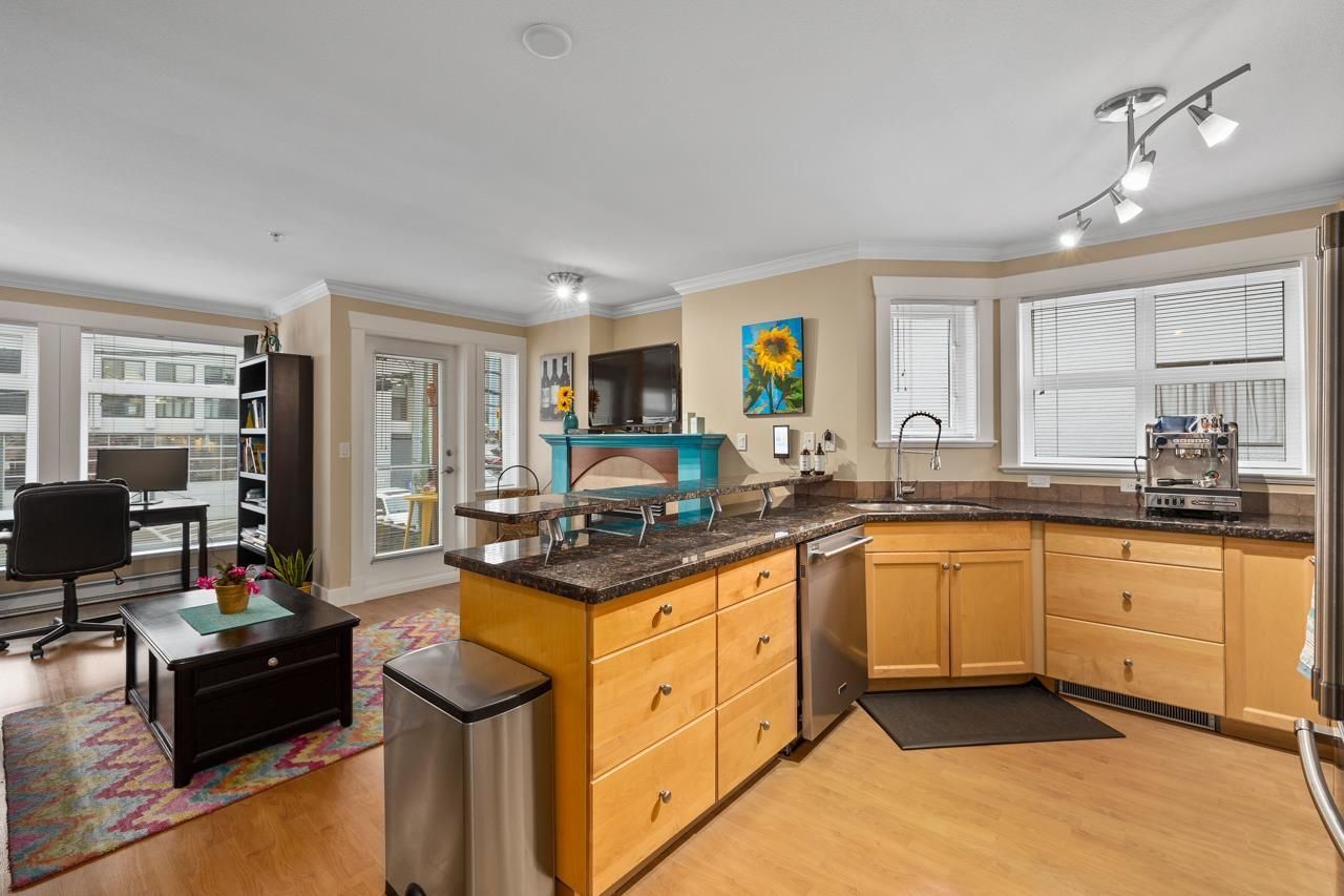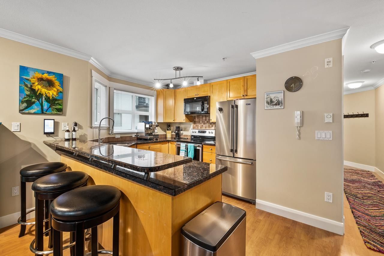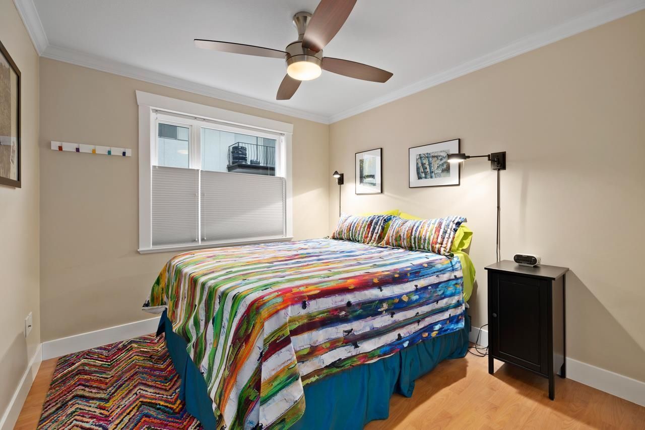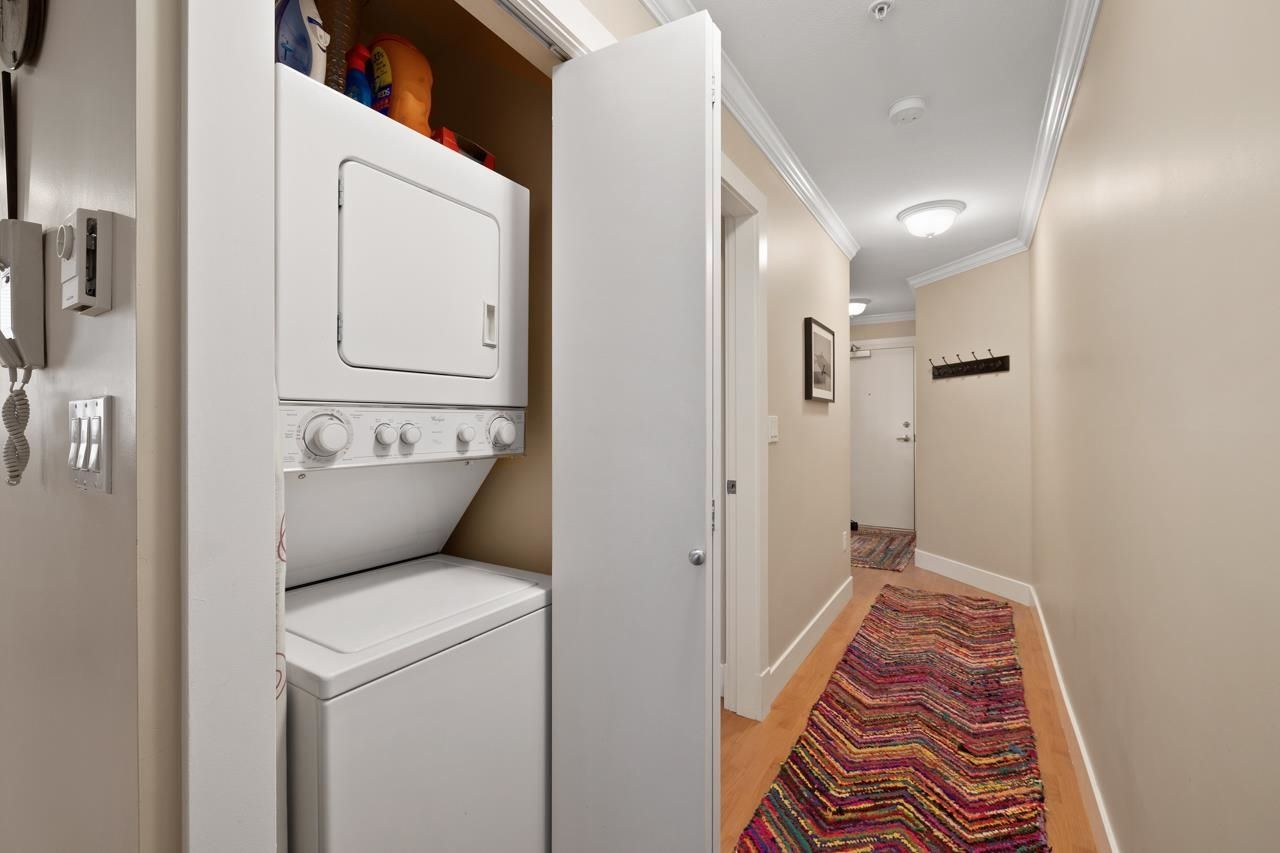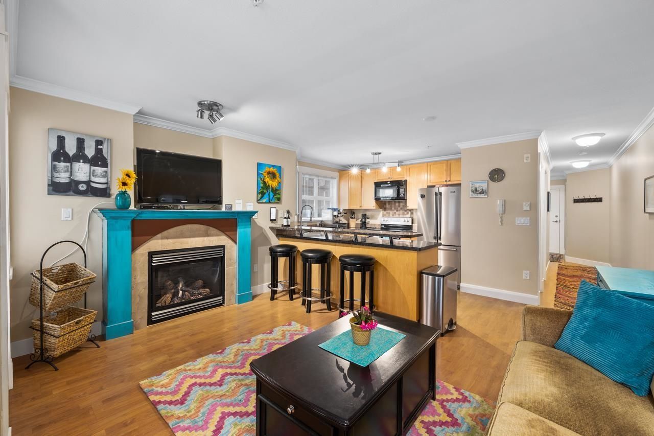 Outstanding opportunity to own a beautifully maintained 1 bed 1 bath Corner Unit approx 675 sqft in an outstanding boutique building “Monticello”. Open concept living with tasteful updates and features that include; Laminate flooring, granite countertops, additional windows in the kitchen, stainless steel appliances, gas fireplace, In suite laundry, secured parking, storage locker and bike storage. Proactive strata makes for a turn key property to call home.