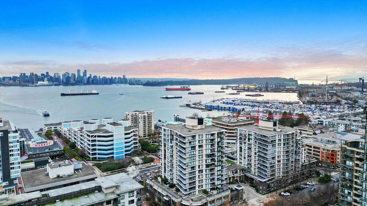 Extremely rare PENTHOUSE offering at TIME in Lolo. 1st time on the market! NW corner with breathtaking sunset, ocean, mountain and city views! Completely renovated, 9ft ceilings, gas fireplace, 2 patios and floor to ceiling windows. Elegant finishings include waterfall island, black hardware throughout, crown mouldings, light grey laminate flooring, S/S appliances, roller blinds, and chic designer lighting. Ideal floorplan with large seperated bedrooms, separate office/reading area and lots of storage solutions. Homes like these rarely come to market. Move in ready! 1 parking 1 locker. Walk to the Quay, restaurants and seabus. Lower Lonsdale at its best!