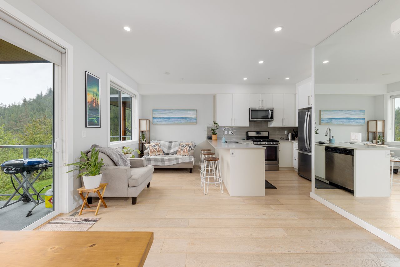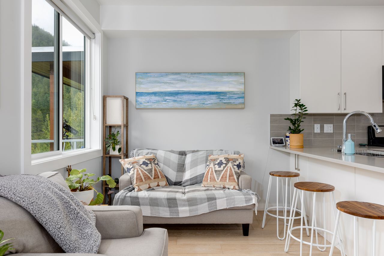 Welcome to Skyridge! A well constructed townhome that lives more like a single family home with the benefits of increased privacy and beautiful, open views of the great outdoors. Built in 2018 this end unit enjoys the benefits of forced air heating, hot water on demand and over 2000sf of finished living space, including a fully finished walkout basement with guest room and ensuite bathroom. The spacious primary bedroom has it all with walk in closet, ensuite bathroom and private mountain views. Access totrails from Skyridge is second to none for all your adventures with easy on/off hwy access and your own driveway/garage. Don't miss this one!