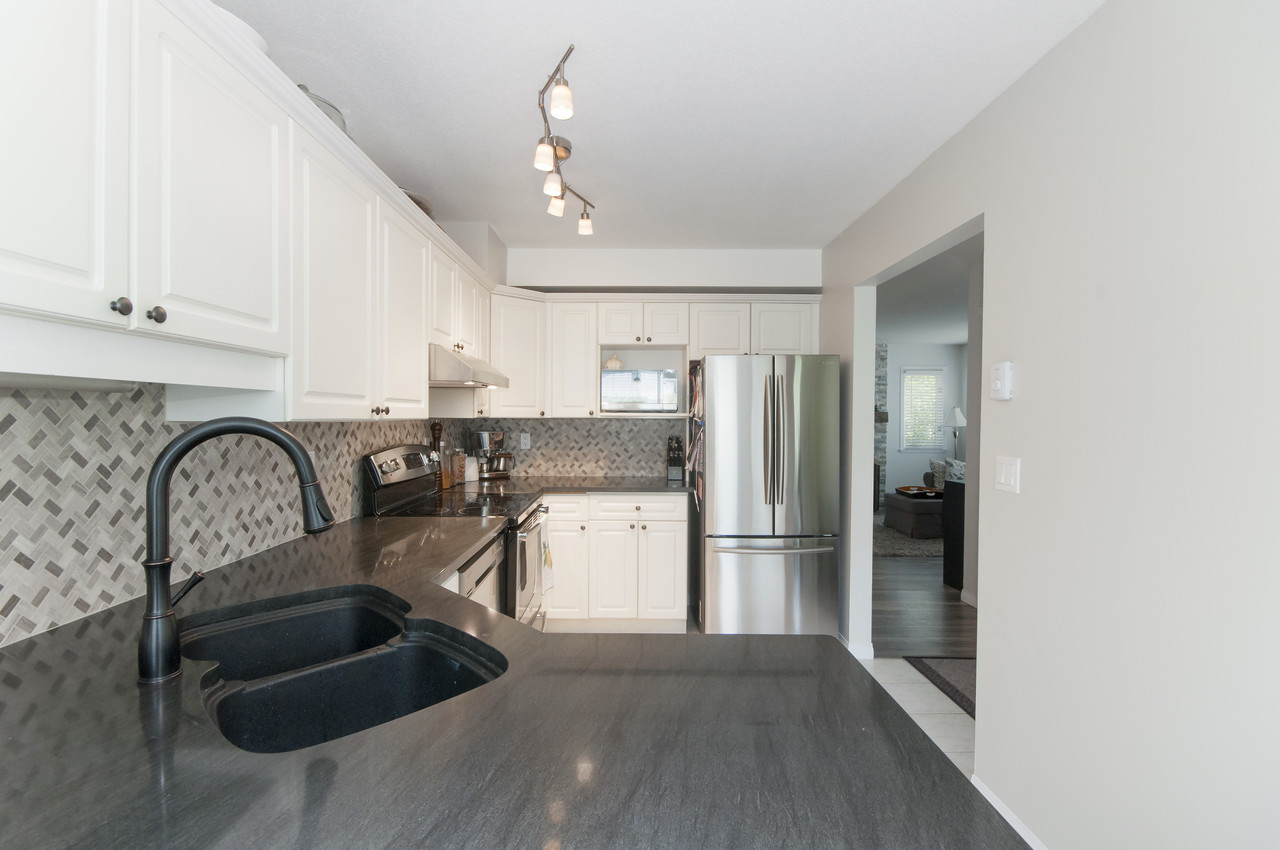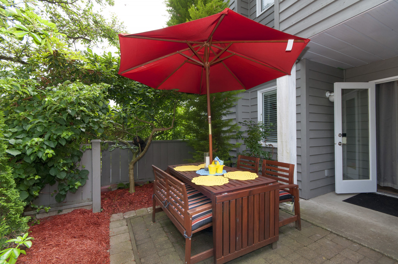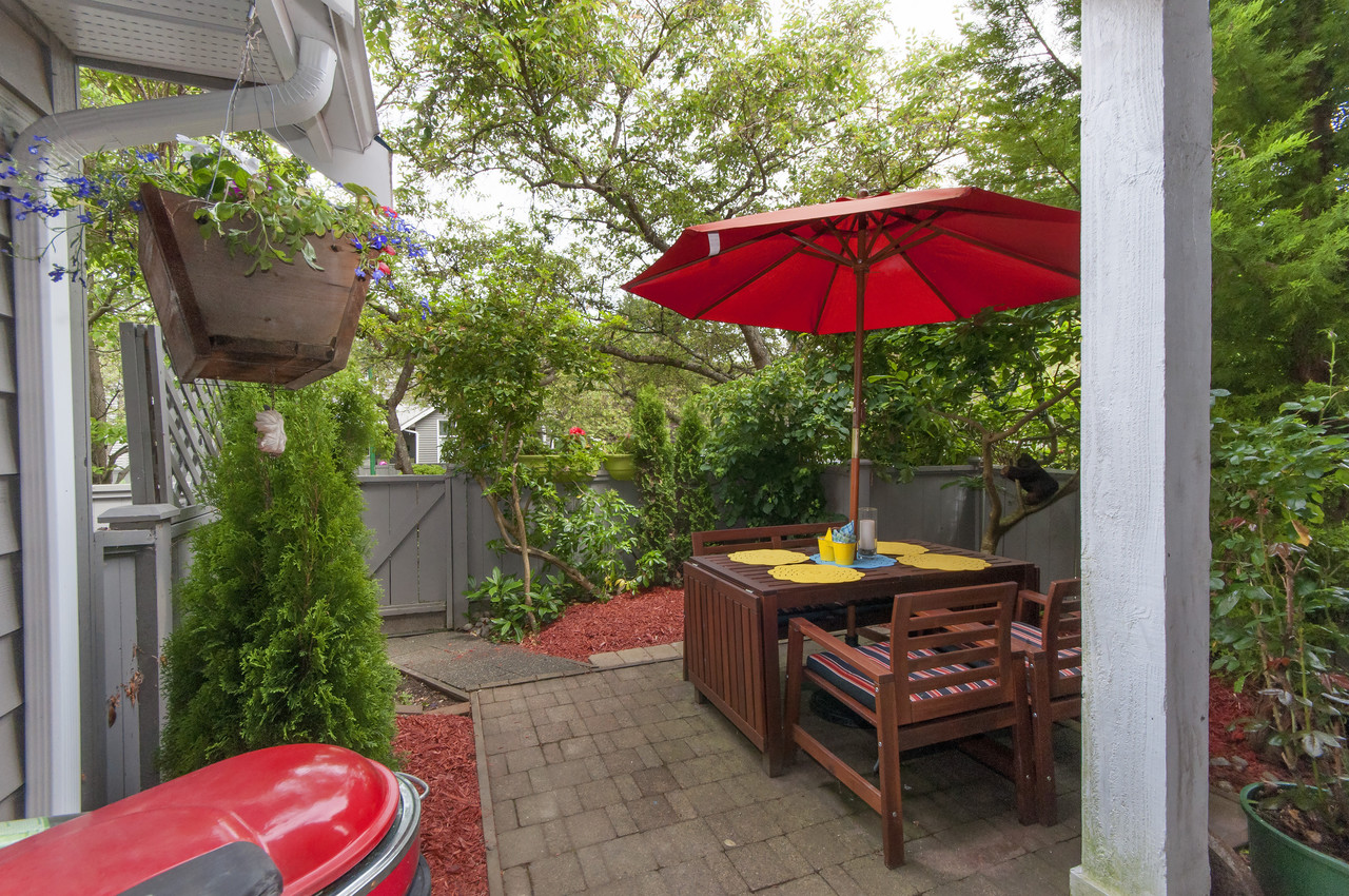 Newly renovated townhome with a private fenced in back patio for your dogs and kids. Main floor offers a huge kitchen with all new stainless steel appliances, granite counter tops and an eating area overlooking the herb garden. Living room has a gas fireplace and dining room's french doors open up to the outdoor entertaining area. Upstairs the Master bedroom suite has it's own sitting area that could easily be converted into a third bedroom, nursery or office. Both bedrooms have full ensuite bathrooms, and vaulted ceilings. This is an end unit townhome, just steps away from transit and shopping. Public open houses Tuesday June 20 10am-Noon & Saturday/Sunday June 24 & 25 2-4pm.