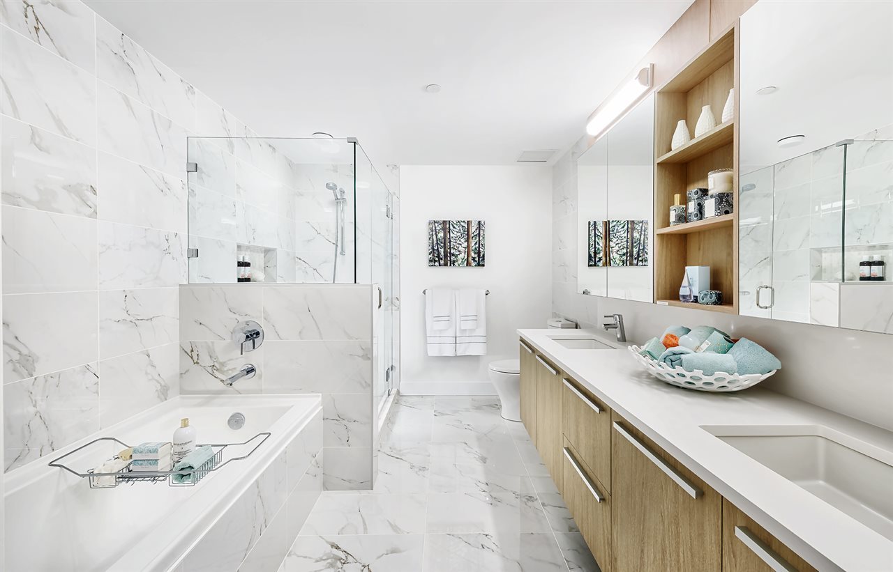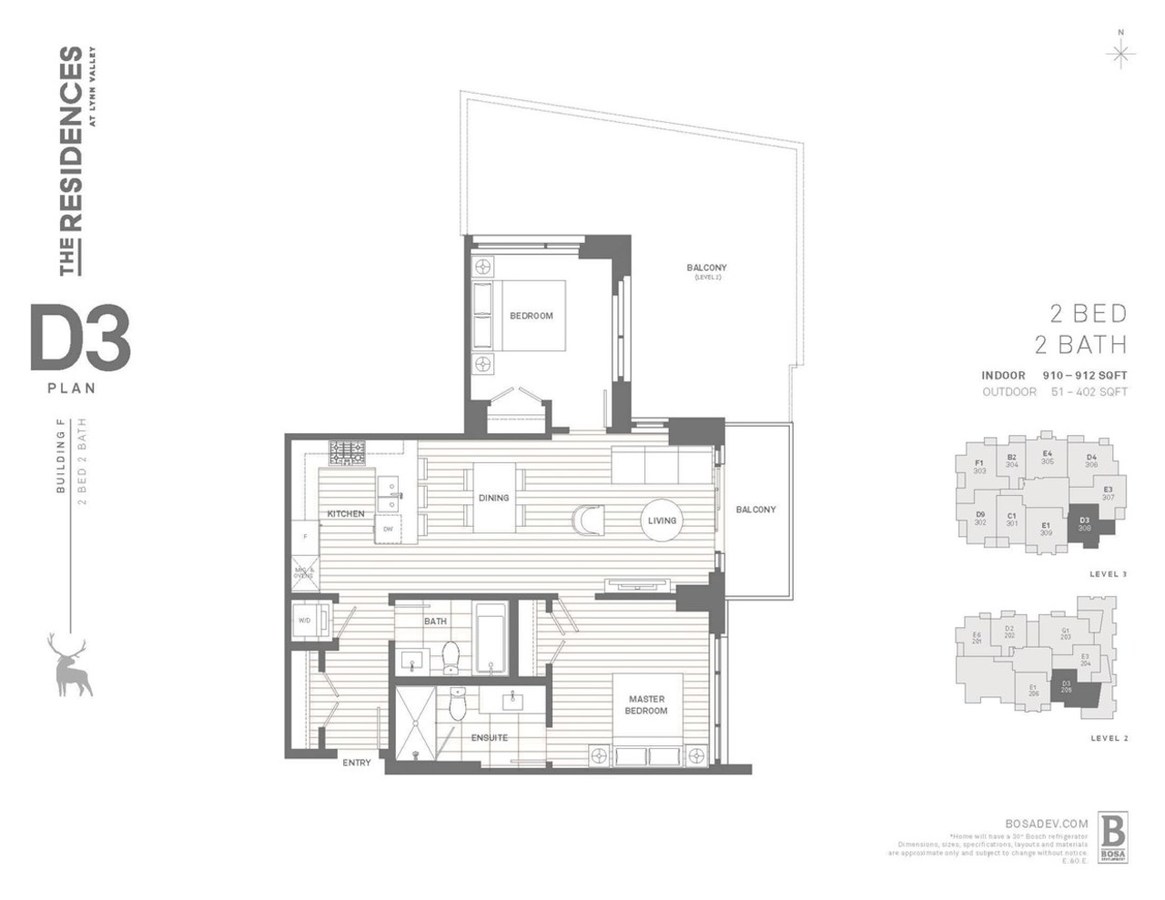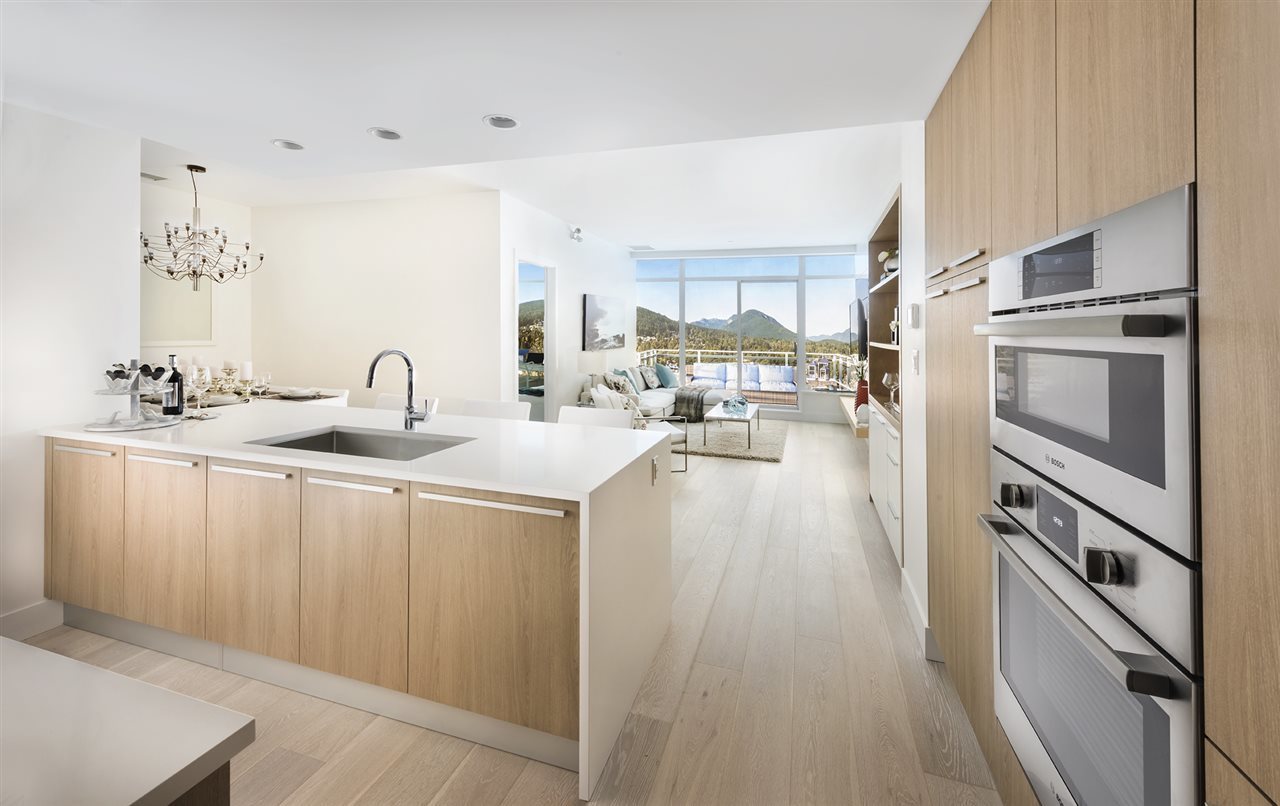 The Residences at Lynn Valley by Bosa Development will redefine the heart of Lynn Valley with 6 well designed residential buidings, over 350 homes & 47,000 sq ft of new commercial space. Phase one consists of 2 boutique buildings with 115 homes scheduled to complete by summer 2018. The Residences feature exclusive elements such as solid concrete construction, air conditioning, smooth finish over-height ceilings, hardwood flooring, custom imported Italian cabinetry & expansive outdoor terraces & patios. Bright, open floor plans with integrated European appliances & quartz wrapped kitchen islands are just a few of the features that set The Residences apart.