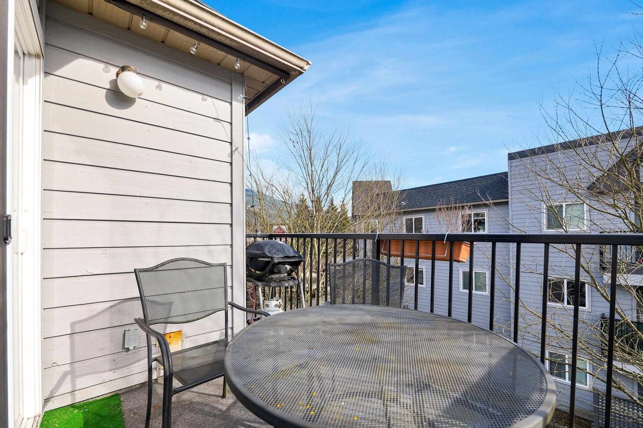 This top-floor, 2 bed, 2 bath corner unit is ideally located within the complex, offering excellent exposure. Enjoy stunning mountain views from inside as well as your private sun-drenched patio. The bright, functional layout features an open concept living space and bedrooms on opposite sides of the unit for added privacy. The spacious primary bedroom includes its own ensuite. With updated appliances, 1 parking space, and 1 storage locker, this property is ready to call home. Centrally located in Squamish, you’re just a short walk or ride away from your favourite amenities and shopping! Public Open House March 15 1-3pm