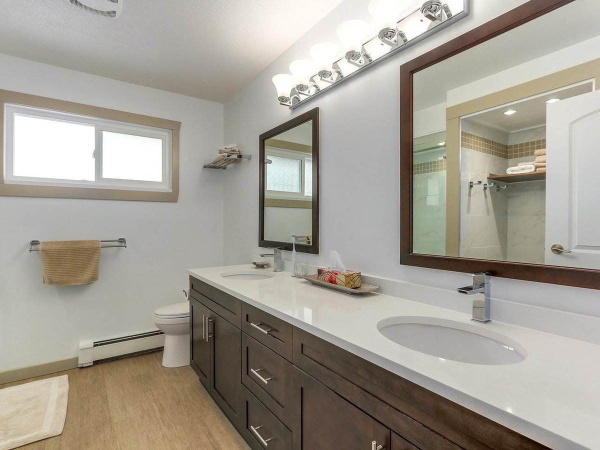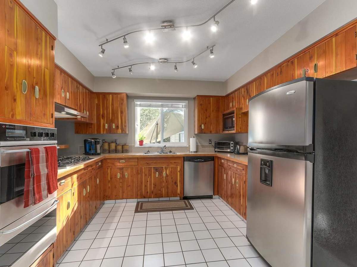 Centrally located in Westlynn Terrace, this West Coast contemporary style home comes with a large (1194 sf) 2 level "duplex style" updated (renovated kitchen & bath) 1 bedroom rental suite. Sizable 8360 sf corner lot. Well maintained home with a new on-demand HW (domestic) & boiler (heat - 4 zones) plus newer roof & windows. 4 bedrooms (in total) & 3.5 bathrooms, 3 fireplaces (2 gas, 1 wood), double garage and bonus RV parking. Easy walk to Ross Road Elementary and quick commute / stroll to Lynn Valley Centre. Transit is just around the corner. Have your realtor call me to book your private showing. Offered $231k below current tax assessment. Have your realtor call me to book your private showing. NEW PRICE - OPEN BY APPOINTMENT.
